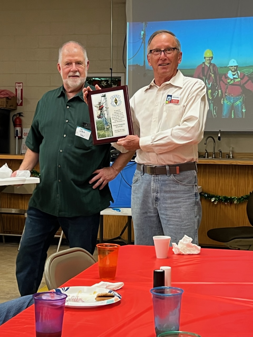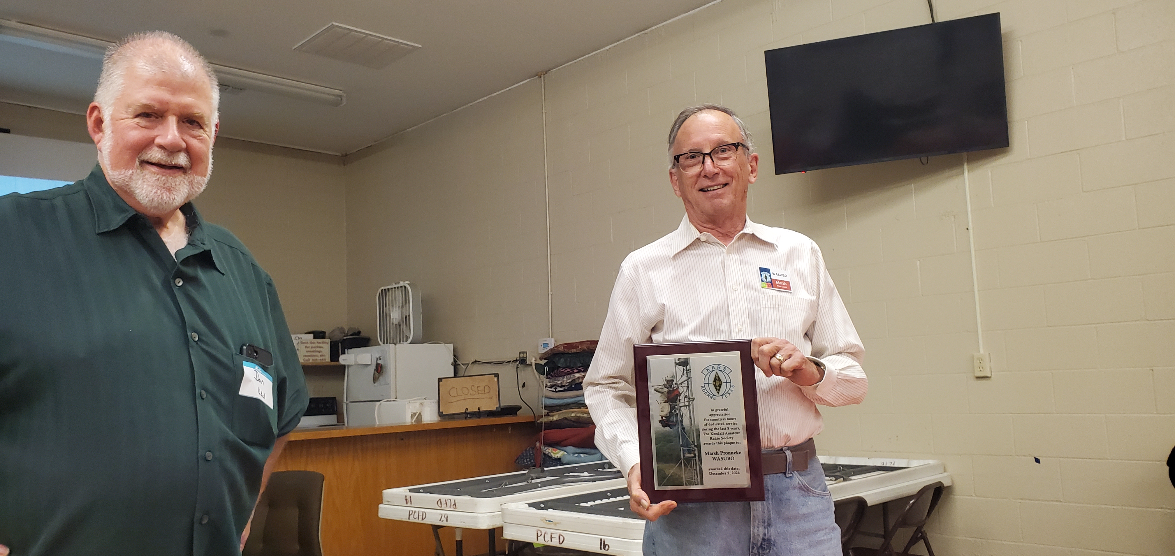 Four $25 gift certificates from DX engineering, provided by the club, were drawn for door prizes. Jim (W6TIR) donated 4 gift certificates as well. Marsh (WA5UBO) was presented with a plaque for all his time & effort this past year keeping the organizations repeaters on the air.